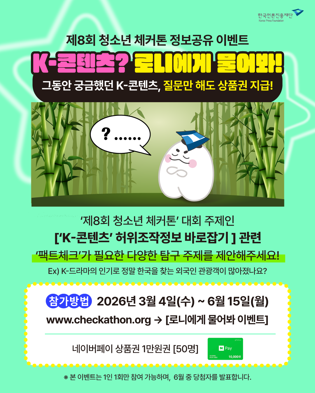 - 추첨을 통해 네이버페이 상품권 1만원권을 드립니다! (50명)