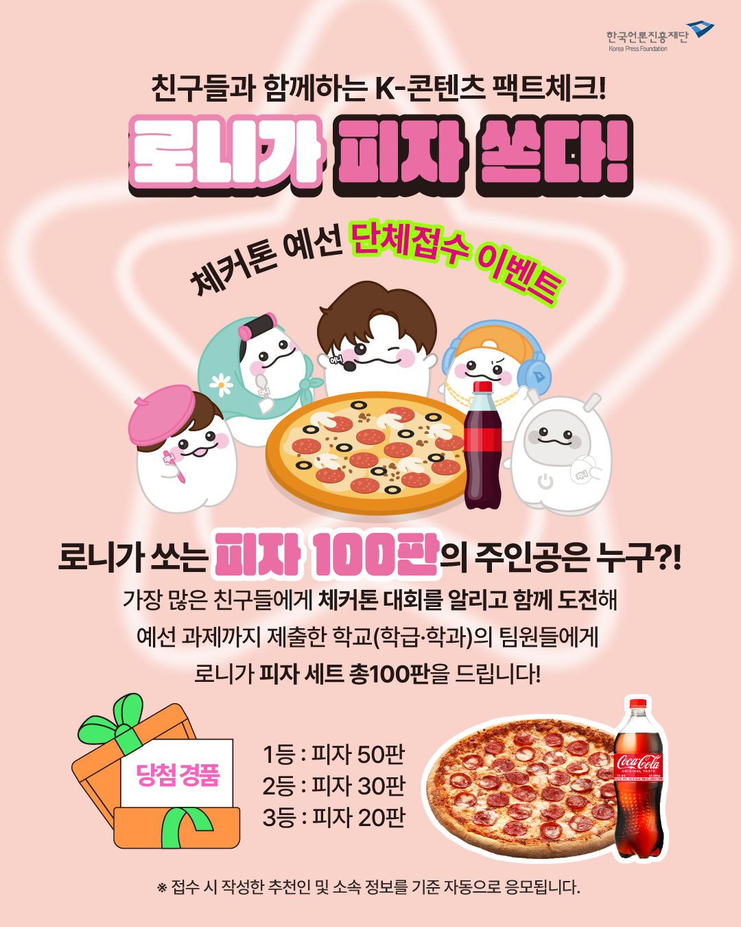 - 1등(피자 50만), 2등(피자 30판), 3등(피자 20판) 총 100판 지급!